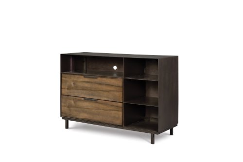 - Media Chest features 2 drawers and top open compartment with wire management in the back